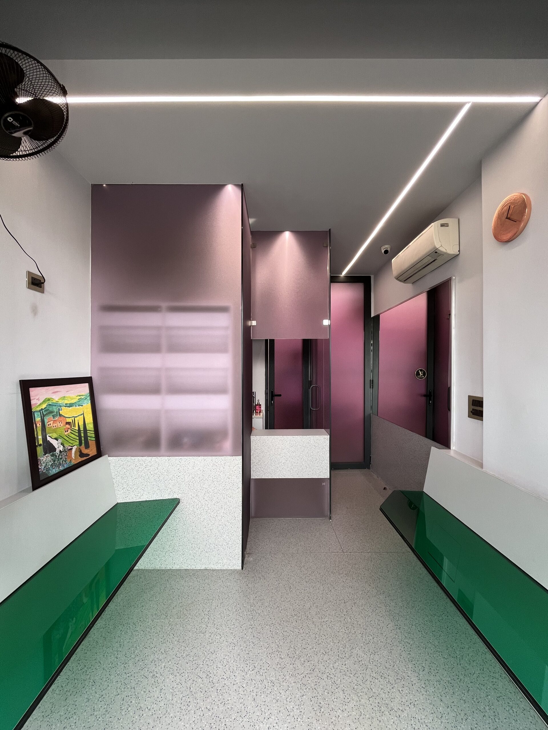 A compact, minimalist homeopathy clinic in Sikka Karma Greens, Greater Noida.