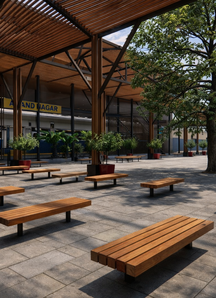 Facade uplifting proposal for Railway station retaining the respecting existing facade and using scrapyard material.