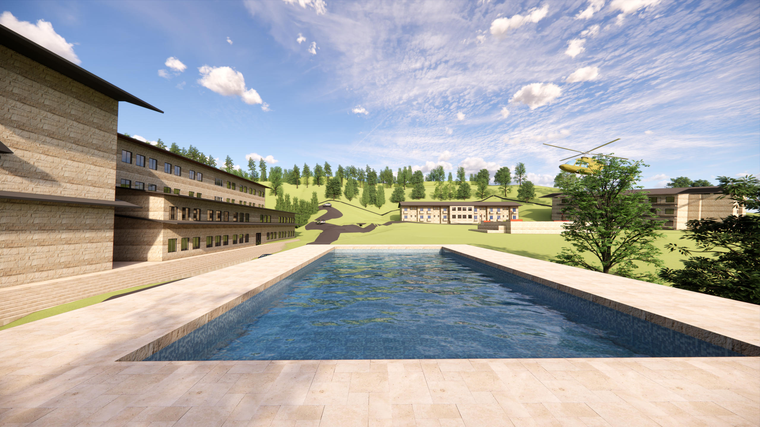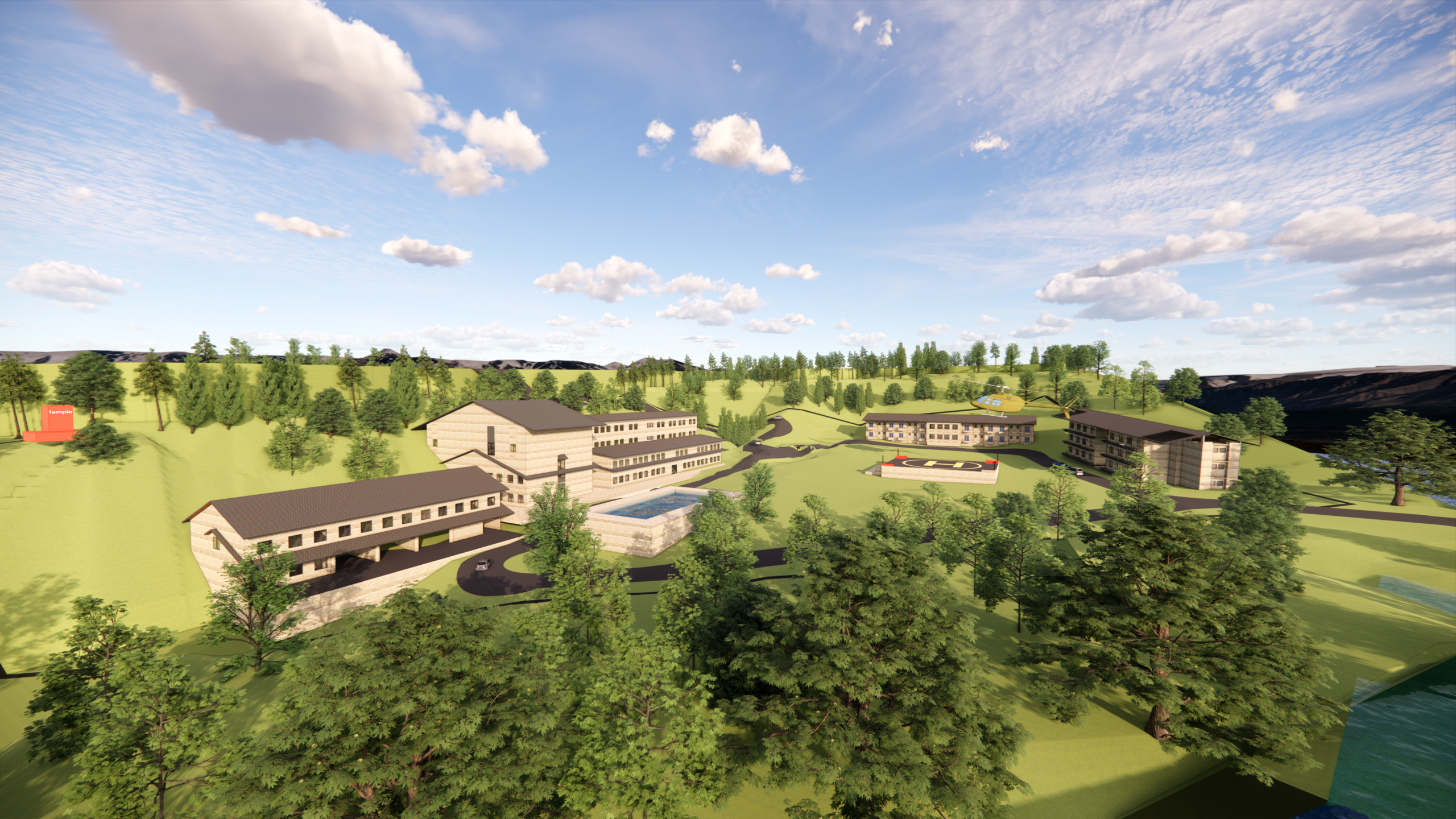 A natural water body located centrally within the site is retained and strengthened as a key ecological  and microclimatic element, contributing to temperature moderation, rainwater management, and landscape identity. Sustainable design strategies including optimal building orientation, passive cooling, shaded circulation, cross-ventilation, and extensive landscape development are integrated to reduce heat gain and energy consumption.