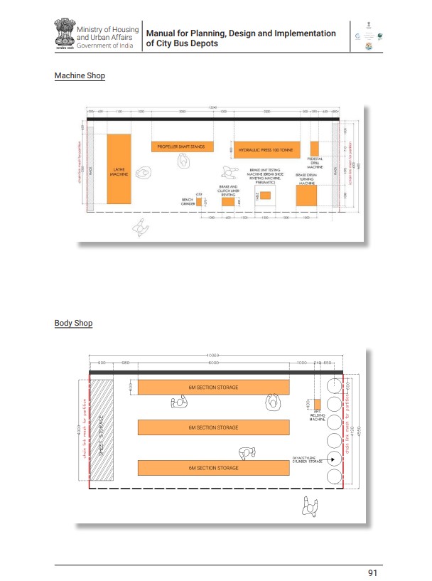 The admin space is planned keeping the admin current and future operation system specific to bus depot and foot fall in different areas. More footfall areas are kept on ground floor and first floor are left for special utilities with less footfall and accommodations. The workshop are of two types mini workshop and major workshop. Different layouts has been prepared considering both. There are two type of sections as per frequency of usage. One is for periodic maintenance and other is for detailed maintenance that