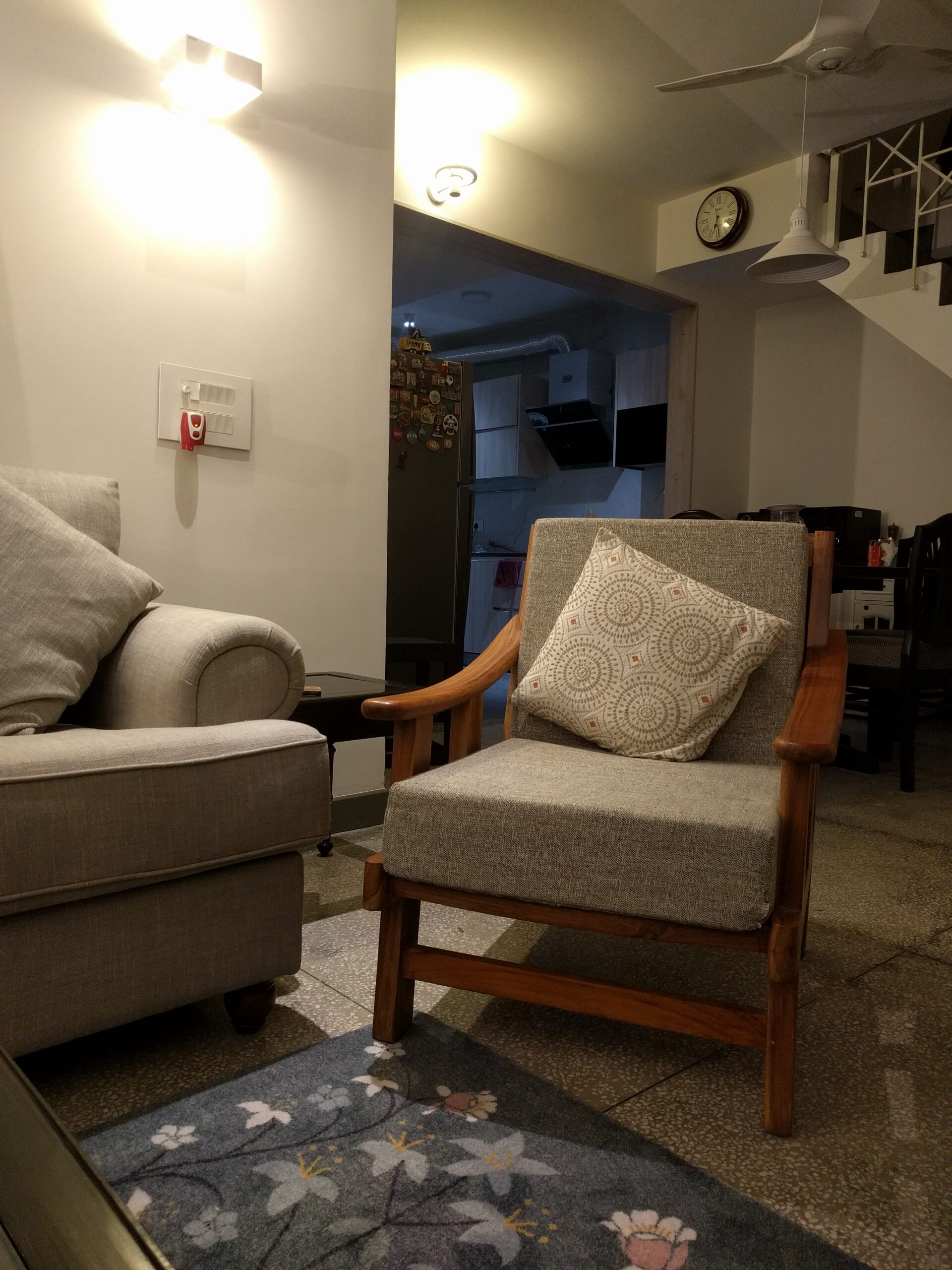 The interiors of the space had to be merged with the already existing flooring, leaving behind the possibility of using bright and contrasting only through accents and decors.
