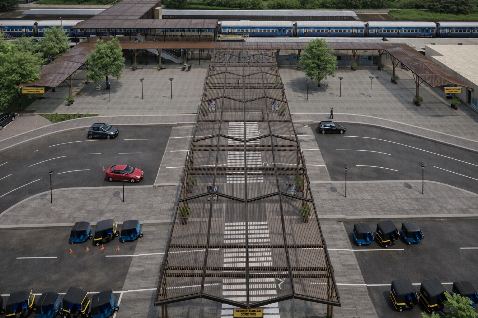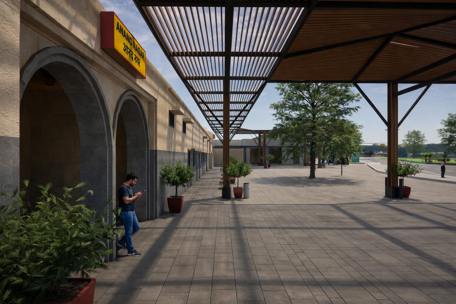 The re-development of Anand Nagar Railway Station envisions a climate-responsive, context-sensitive, and sustainable public infrastructure that enhances passenger experience while addressing the harsh climatic conditions of the region. The design concept draws inspiration from bamboo screen elements, interpreted through contemporary construction techniques to create a distinctive architectural identity for the station.